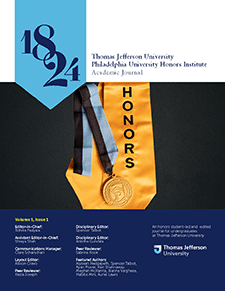 1824 is an honors student-led and -edited journal for undergraduates at Thomas Jefferson University. The journal aims to advance knowledge by organizing and displaying student-authored research papers, literature reviews, creative writing pieces, and more in an annual issue that matches Jefferson’s Humanities & Health Forum theme.