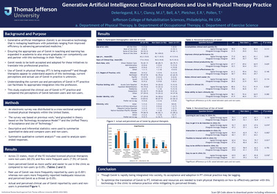 - Understanding the current use and perceptions of GenAI in PT practice can facilitate its appropriate integration into the profession.